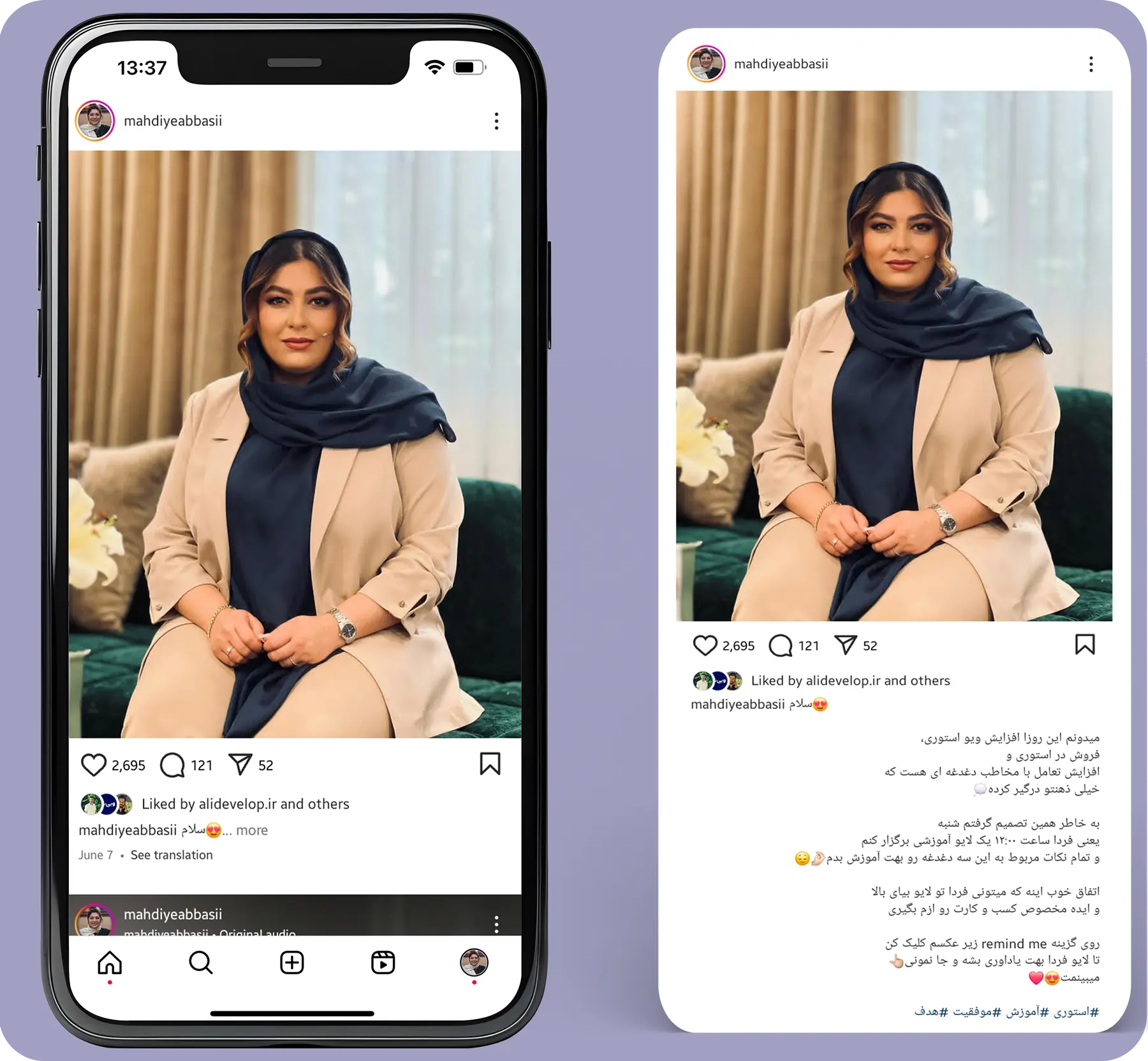 - کپشن جذاب: کپشنها میتوانند به پست شما معنا و ارتباط بیشتری بدهند. از آنها برای جلب توجه، اشتراکگذاری داستان و دعوت به اقدام (CTA) استفاده کنید.